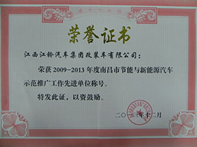 2009-2013年度南昌市節(jié)能與新能源汽車示范推廣工作先進單位