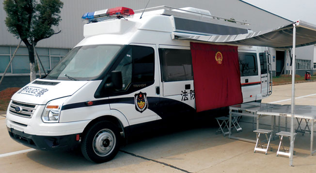 適用于法院審判載客,具備現(xiàn)場立案、調(diào)解、審理等流動法庭功能和流動普法宣傳功能。