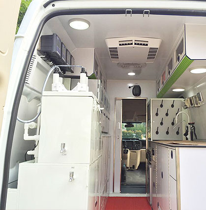 配備車(chē)載空調(diào)、車(chē)載冰箱、照明燈、換氣扇等,車(chē)上作業(yè)環(huán)境舒適。